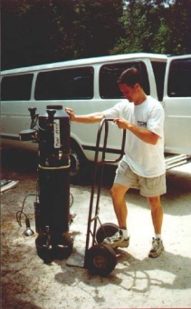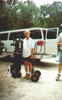 Bary Miller and Dave Sweetin doing ???? | Lila is impressed by the video scooter prototype. George and JJ later used it to video Wakulla from 14,000 feet all the way to 18,000! |