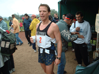 What a total disaster that race was! But I learnt so much from it. The race started at 10am. 70 runners only. It was raining and the temperature was 8 deg. C (45 deg. F). It was a 21K loop that we did twice. I did my first lap in 1h37 minutes. My second one took 2h18. Total time was 3:55. I was very cold and very bonked. But to be fair, I knew that something like this might very well happen. It started 3 months before the race with what is still to be confirmed as a Metatarsal stress fracture in my right foot. It was after my second 3 hour run of the season on the way to the 4 hour stuff. Only it was with some new shoes that some guru convinced me were better for me. And to make it worse I was working on my technique to land on the forefoot and keep my feet parallel to the motion. If you can visualize the motion, it means that my big toe's Metatarsal was doing close to nothing and the smaller ones were getting hammered. Now in hindsight I wonder why we have one bigger than the others. Could it be that it's because it's supposed to work more? Also, since then I looked at pictures of the best marathon runners. They do tend to run with feet at an angle. So it was wrong for me to try to make them go parallel. Unfortunately, this little technique mishap seriously affected my training. I had to stop running for 3 weeks and when I tried to get back in the training plan I felt that I could not take the risk to do any run longer than 2 hours. So I thought that doing 2 1h30 runs on Sunday was like doing one 3h run. The last long run (2 weeks before the marathon) I even did 1 2h run followed 3-4 hours later by a half marathon race with 30 min warm up. Hopefully I thought, that is like a 4 hour run. Well, it is not. Another bad consequence of all this is that I did not do long enough runs to train my stomach to manage the eating and drinking. |