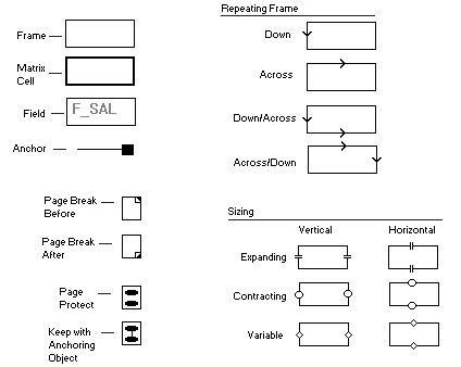 Do you know all the symbols used in the layout editor? This image is from the online help of 6i.