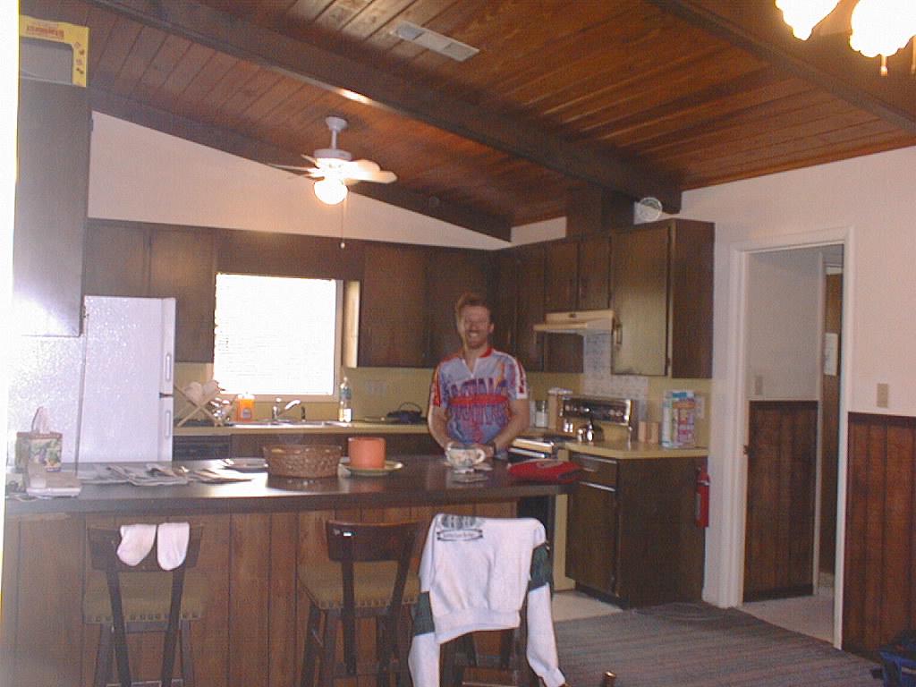 I don't have too many pictures of the inside of the house. But here is the old kitchen. From where I stand in the picture I see Dilly's palace. I spent quite a bit of time building that thing. I hope that Dilly really likes it. It is his Palace.